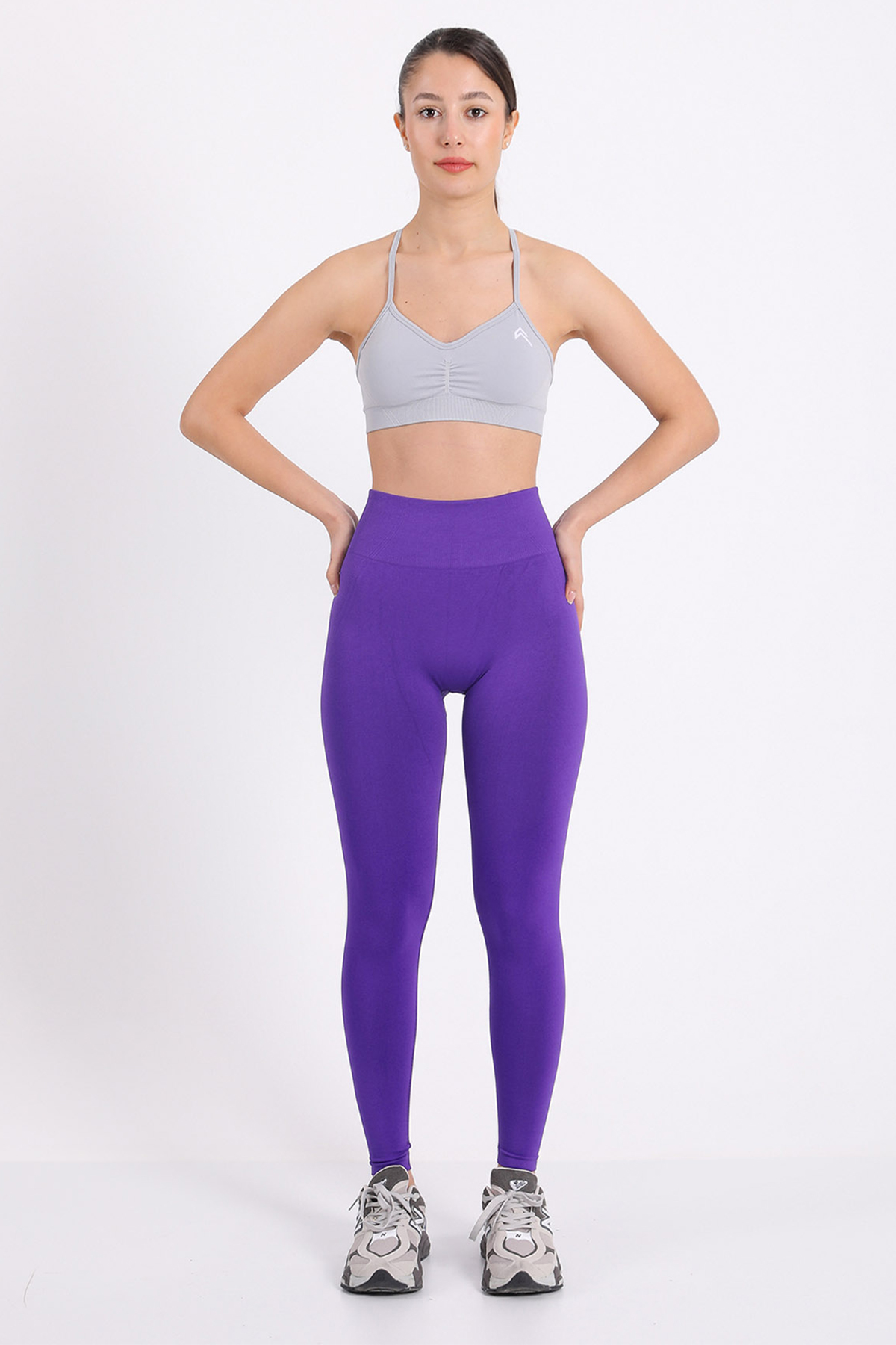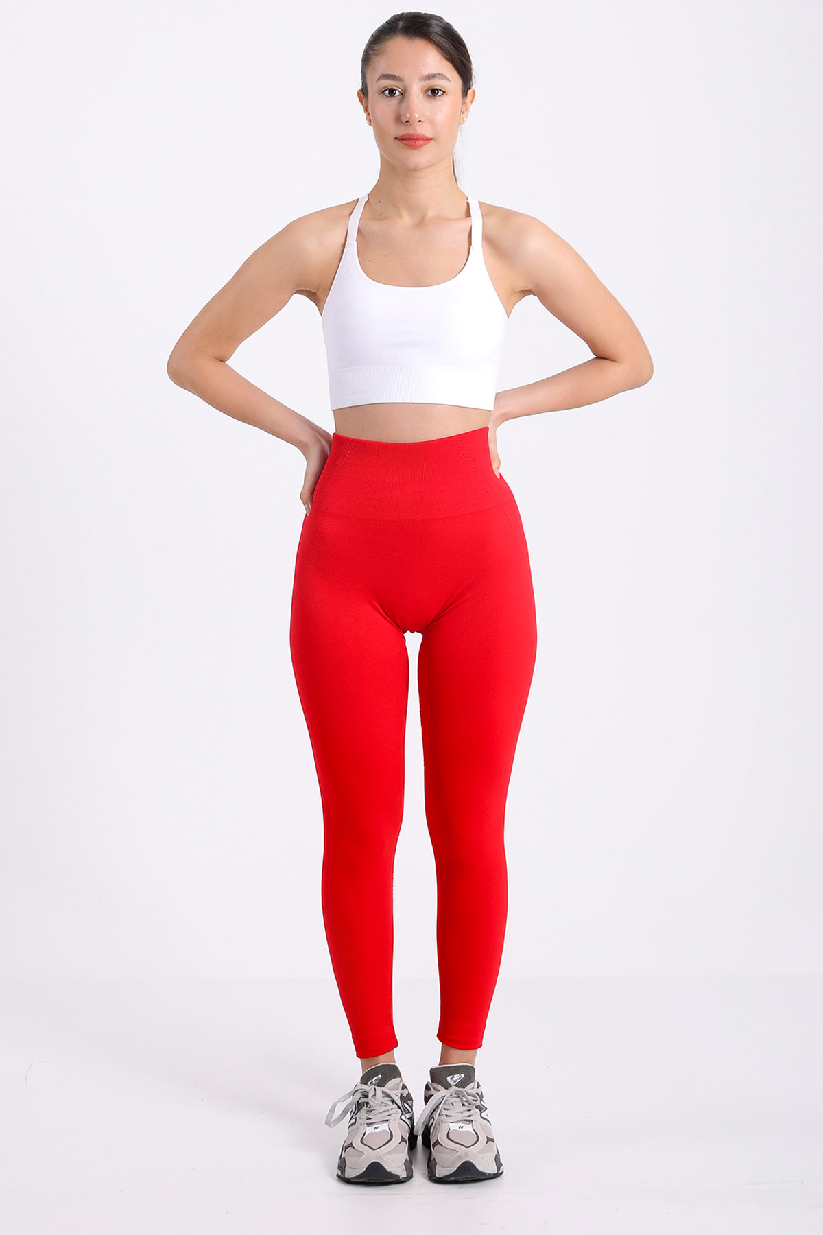 Yüksek Bel Büzgülü Dikişsiz Sporcu Tayt
